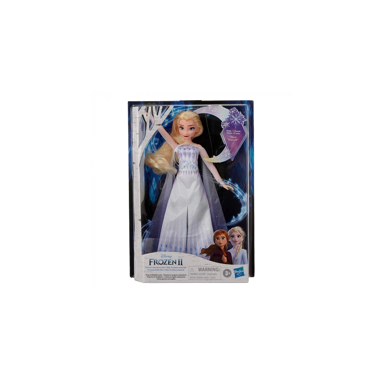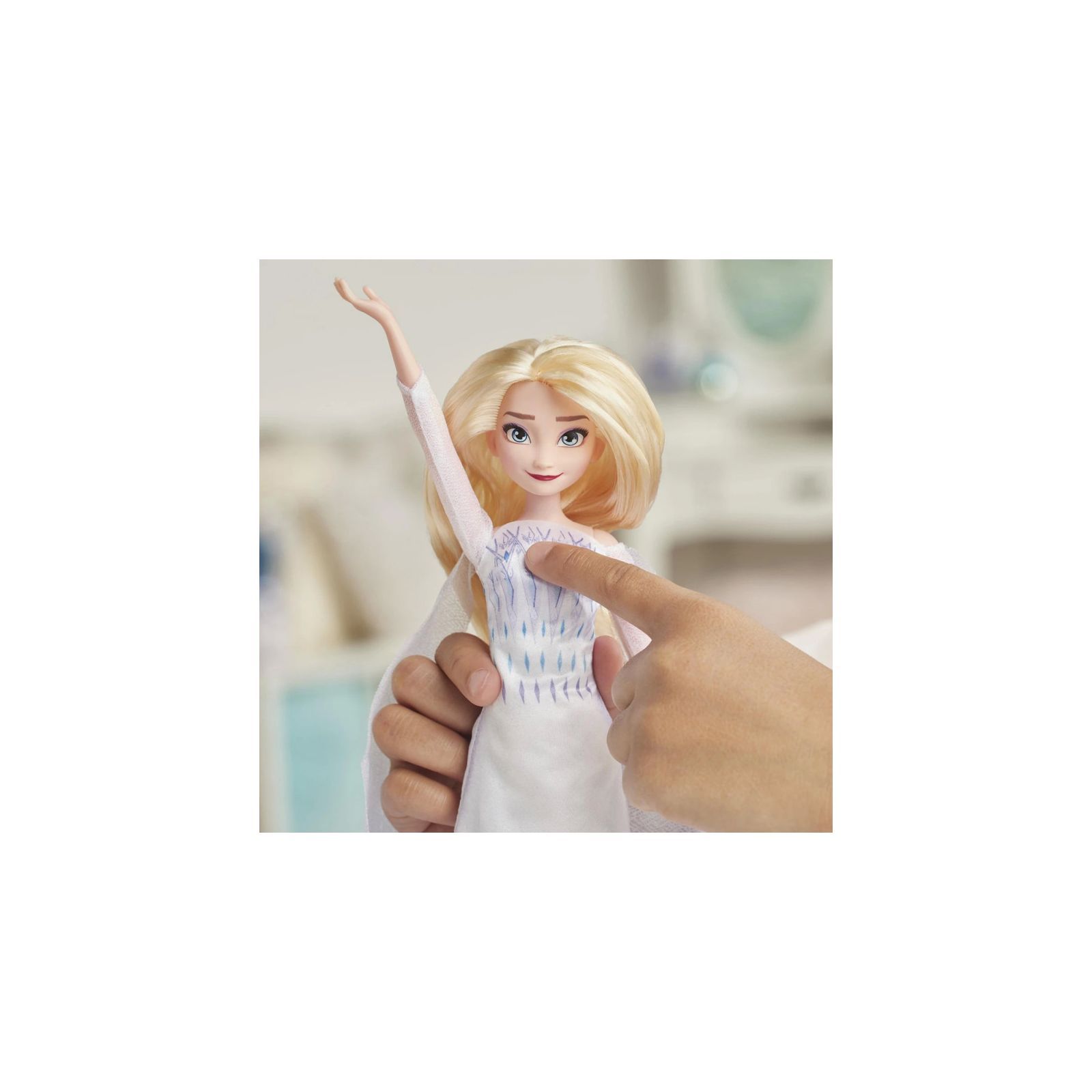 Натисніть на кнопку в області грудної клітки ляльки, і ви почуєте пісню Into the Unknown з мультфільму. Коли грає пісня, уявіть, що лялька її співає. Розігрувати сцени з мультфільму стало ще цікавіше разом з "співаючою" лялькою Ельзою. А також, відтворіть улюблені музичні сцени з мультфільму разом з лялькою Ганною. Лялька Ганна продається окремо.