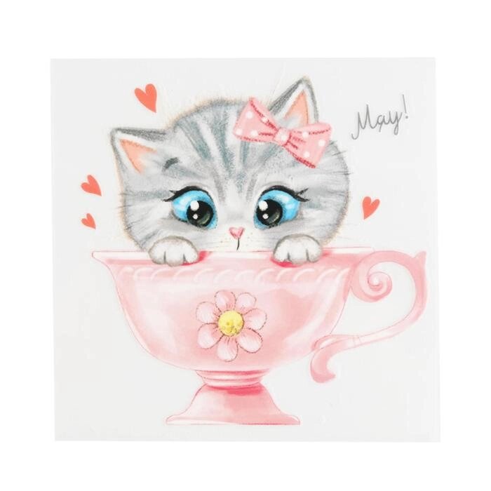 Термонаклейка для декорирования текстильных изделий детская "Мяу Мяу!14 х 14 см