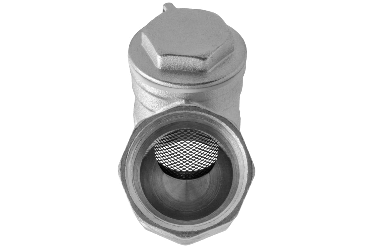 Косой фильтр Aqualink 1" в/в ИС.191487 предназначен для очистки потока рабочей среды трубопровода от механических примесей. На изделии указано направление потока. Корпус и ревизионная пробка изготовлены из никелированной латуни ЛС 59-2. Фильтрующий элемент выполнен из нержавеющей стали AISI 316. Сетчатый фильтр изготовлен из нержавеющей проволоки, образующей мельчайшие ячейки, размер которых не позволяет проникать крупным механическим частицам. Высокий уровень герметичности изделия обеспечивается прокладкой пробки, изготовленной из фторопласта.