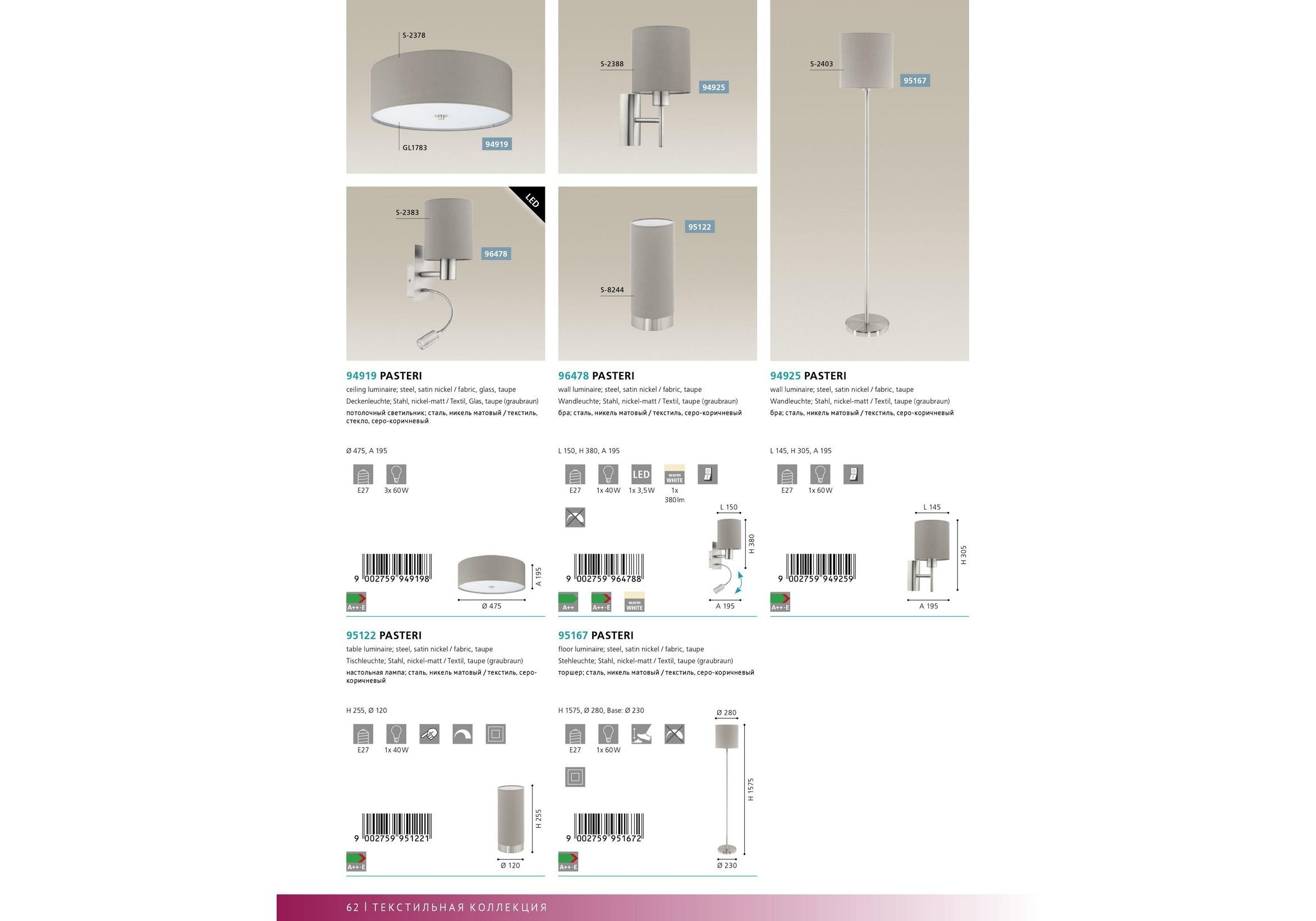 • Изготовитель ЕГЛО Леучтен ГмбХ Хейлигкреуз 22, A-6136 Пилл, Австрия / EGLO Leuchten GmbH Heiligkreuz 22, A-6136 Pill, Austria