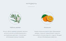 - Активные ингредиенты масло чайного дерева, витамин Е, экстракт алоэ вера, экстракт апельсина, витамин C