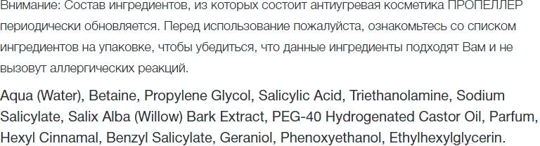 - Активные ингредиенты салициловая кислота, бетаин, экстракт коры ивы