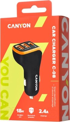 Зарядное устройство автомобильное Canyon CNE-CCA08BO
