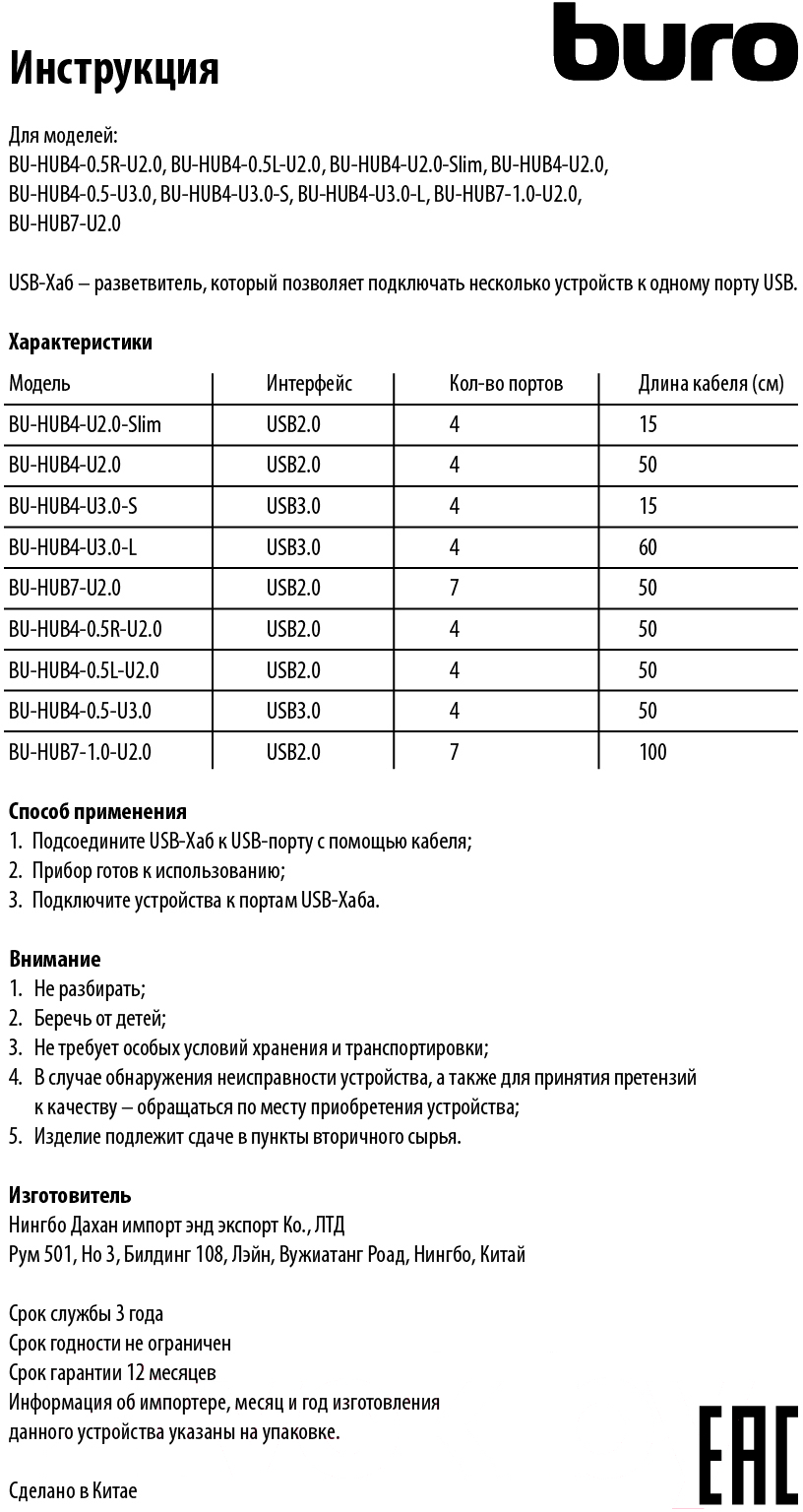 USB-хаб Buro BU-HUB4-0.5-U3.0