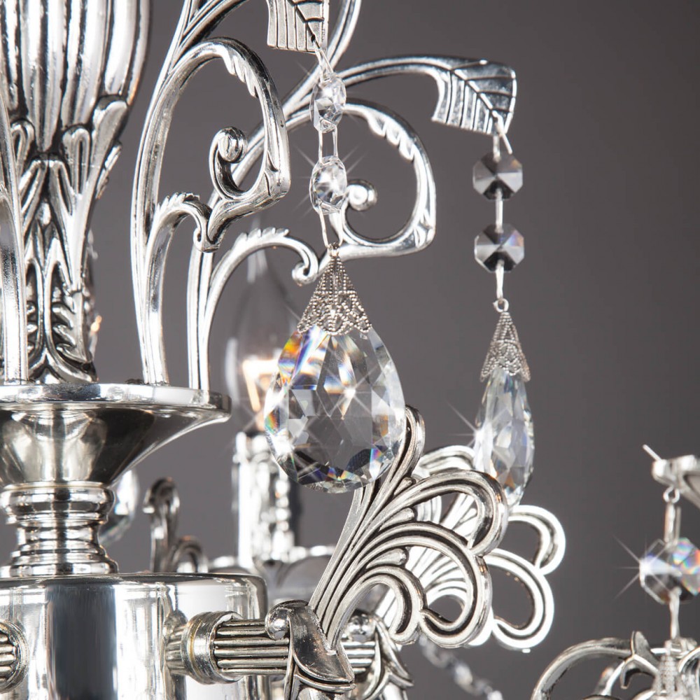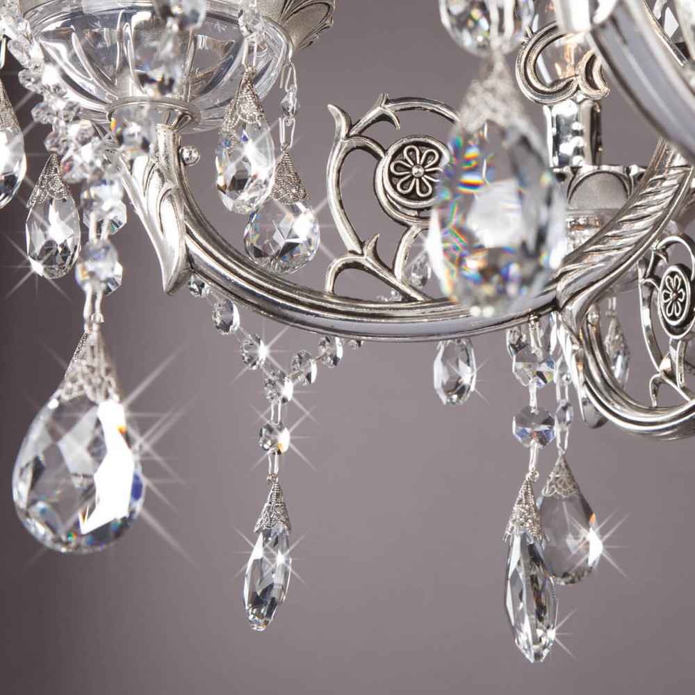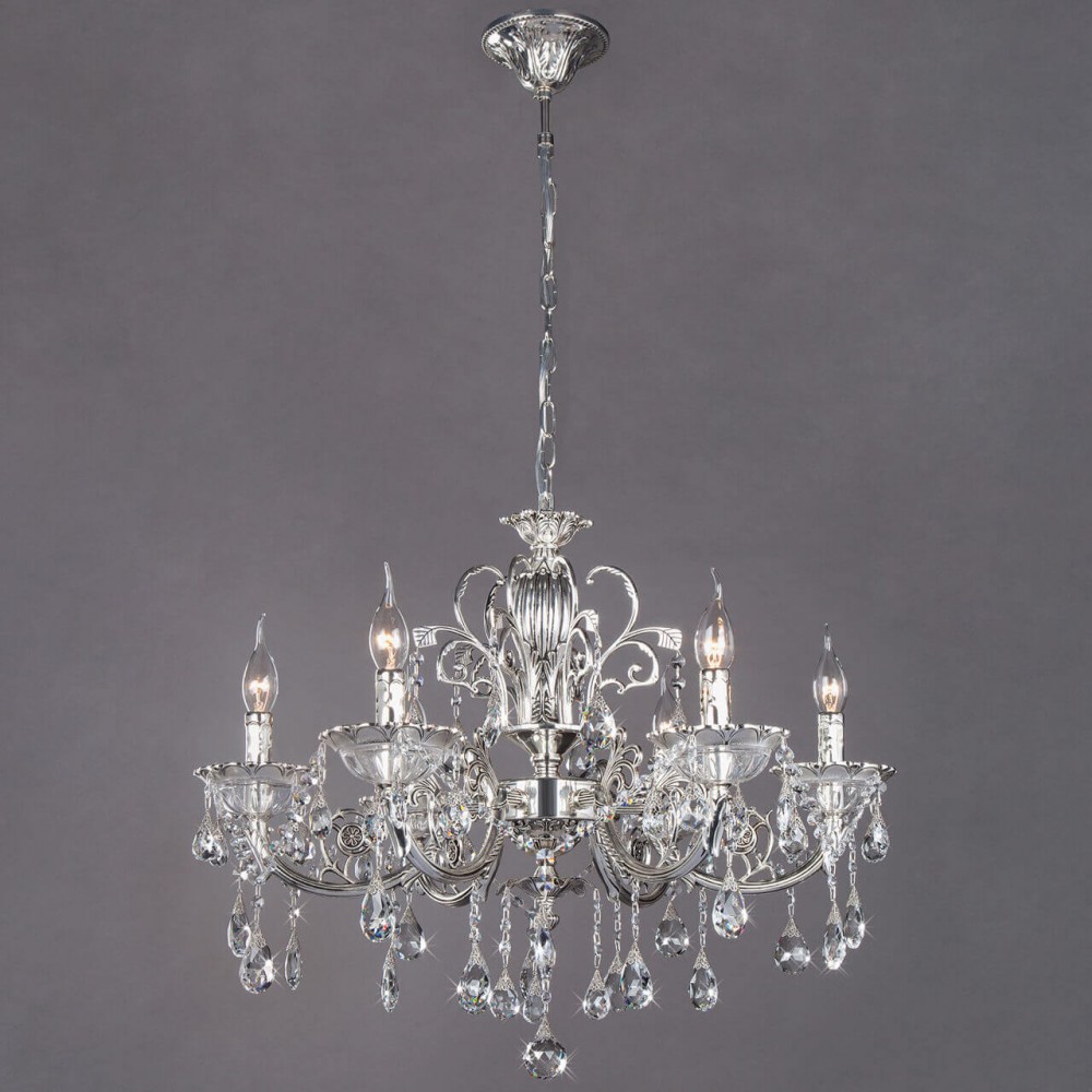 Нежная модель 230/6 Strotskis от компании Bogates относится к коллекции 230, 231, 232 и отлично подойдет Для гостиной. Cтиль в котором оформленная данная модель - Классика. Подвесная люстра Bogates 230/6 Strotskis осветит помещение площадью 29 кв. м. Производитель Bogates рекомендует использовать для устройства следующие лампы: Накаливания, цоколь E14, мощность 60 W. Основным цветом товара является Серебро
