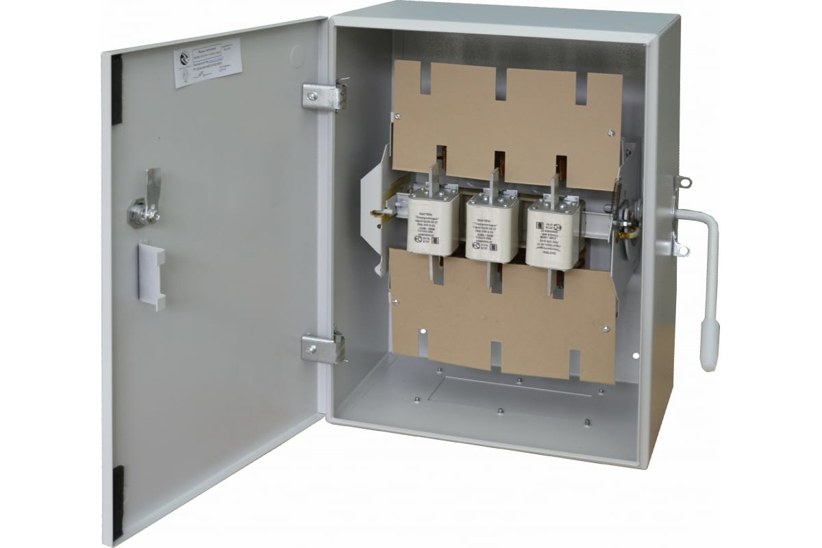 Силовой ящик УЗОЛА ЯБПВУ 250 - IP31-УЗ-001-U7000114 с блоком "Предохранитель - Выключатель" унифицированный на 250 Ампер. Силовые проводники подключаются к неподвижным контактам основания предохранителей. Механизм включения - отключения защищен патентом РФ на «Полезную модель».