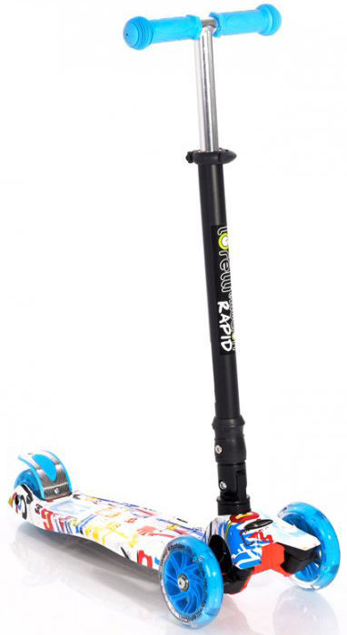 Детский, материал платформы - пластик, количество колес - 3, диаметр - 120 мм, подсветка колес, нагрузка до 50 кг.