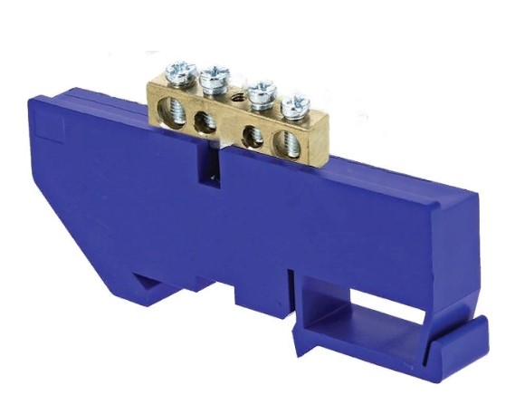 Шина "0"N (6х9мм) 4 отв.латунь синий изолятор на DIN-рейку EKF PROxima sn0
