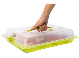Транспортировочные контейнеры для пирожных, тортовницы из серии JOHN швейцарского производителя ROTHO изготовлены из легкого в уходе, моющегося пластика, который, конечно же, безопасен для пищевых продуктов и не содержит BPA. Прозрачная крышка надежно закрепляется на нижней части двумя боковыми зажимами, встроенная ручка удобно лежит в руке и обеспечивает бережную транспортировку. Бутерброды, кусочки торта или кексы будут надежно упакованы, а чтобы продукты оставались свежими, волнистое дно обеспечивает циркуляцию воздуха. Прозрачная крышка обеспечивает свободный обзор содержимого, предотвращает его высыхание, а так же защищает от муравьев, насекомых и других нежелательных визитеров. Если контейнеры JOHN не используются, то их можно хранить сложенными один в другой. Швейцарское Качество Бренда.