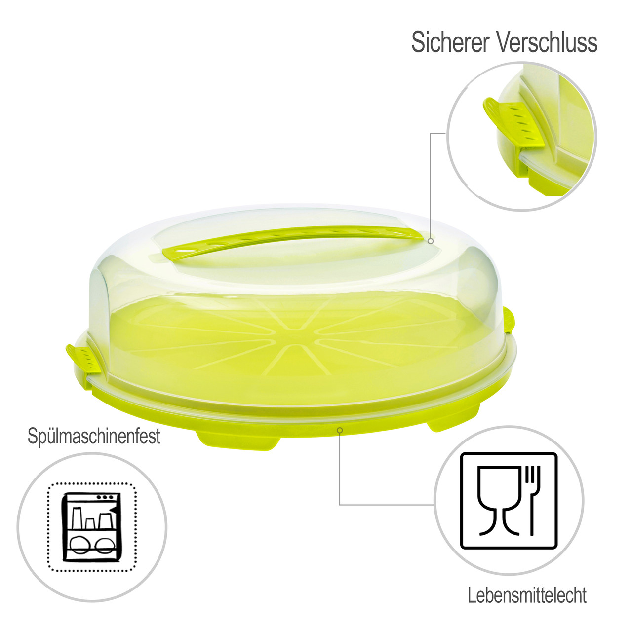 Всегда есть повод испечь торты - будь то день рождения любимого человека, семейный пикник или барбекю с друзьями. Как досадно, когда любовно украшенное изделие падает при транспортировки! Контейнер для торта FRESH гарантирует, что ваши сладости прибудут к месту назначения целыми и невредимыми. Даже автомобильное путешествие можно преодолеть с пирожными благодаря возможности надежного закрывания и удобной ручке для переноски. При этом выпечка защищена от пересыхания, прямых солнечных лучей и насекомых.