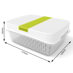 С Dynamic Box 1,6л FRESH ваши фрукты и овощи теперь сохраняются дольше. Кроме того, большим преимуществом является то, что вы также можете хранить свежую пищу здесь в больших количествах. Летом правильное хранение особенно важно, потому что позволяет хранить продукты более одного или двух дней. Сбалансированную влагу обеспечивают система вентиляции. Корзина экрана установлена увеличенная так, что циркуляция воздуха будет работать оптимально. В комплект поставки входит свежий фильтр. Наборы свежих фильтров приобретаются отдельно в магазине. С Динамик Фреш Бокс вы сэкономите деньги, так как и овощи и фрукты сохраняются дольше. PP- пластик, из которого изготовлен контейнер Fresh Box, не содержит BPA и загрязняющих веществ. Для очистки поместите детали в посудомоечную машину.