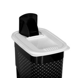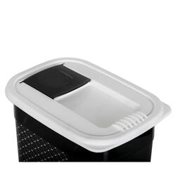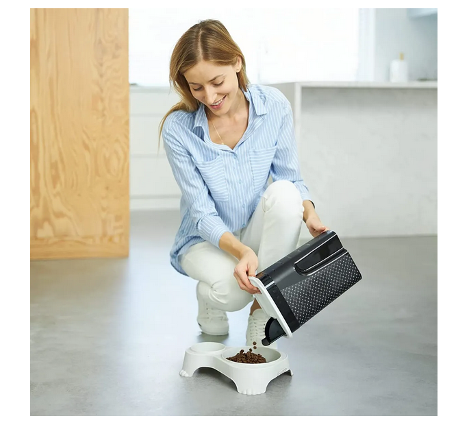 Контейнер для хранения корма имеет эргономичную форму, что позволяет использовать его одной рукой.