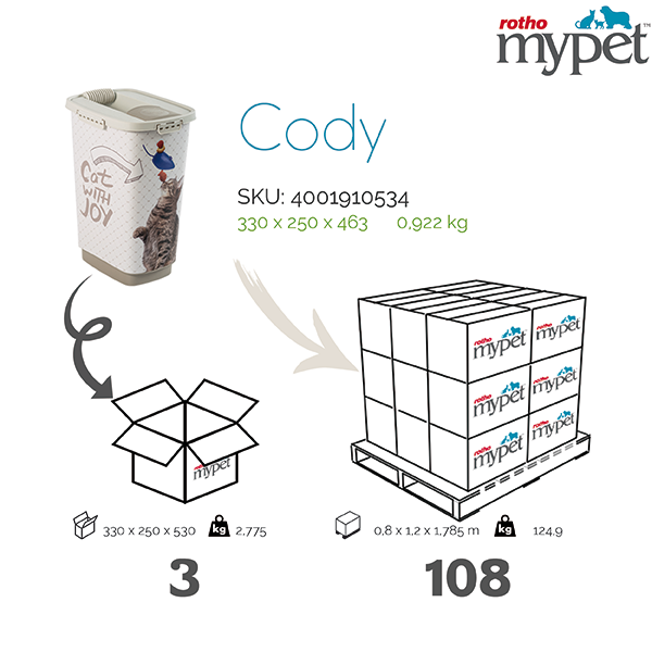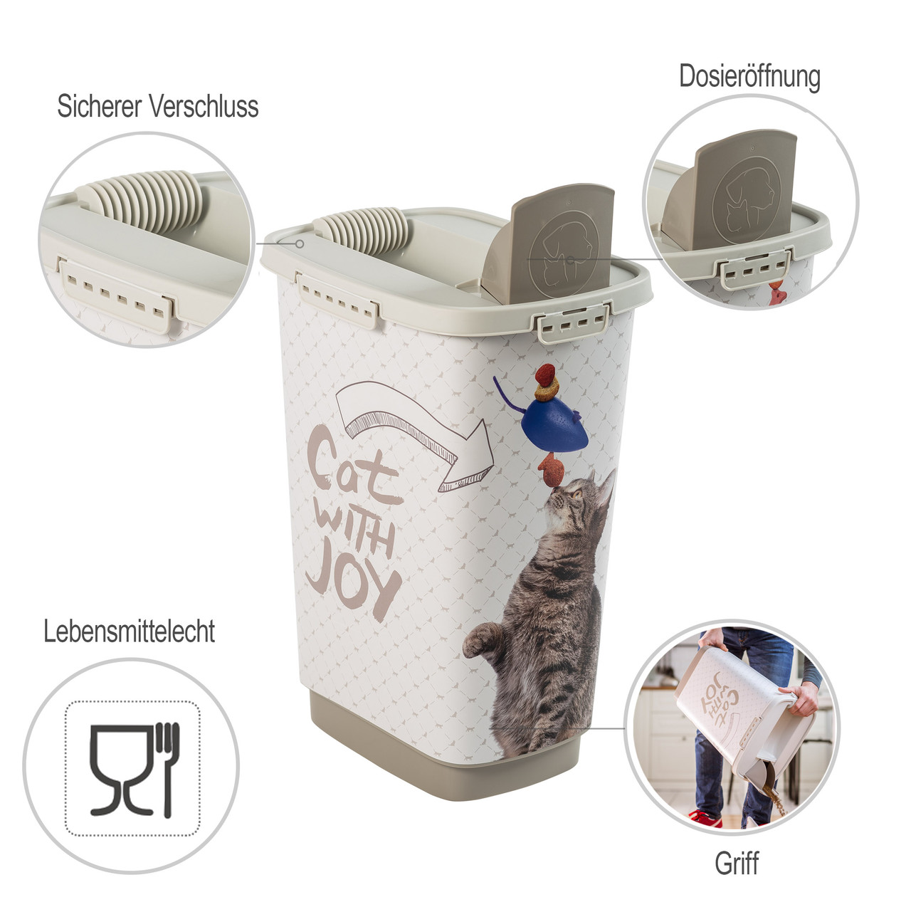 Контейнер для корма Cody 25 л, Cat with Joy, белый
