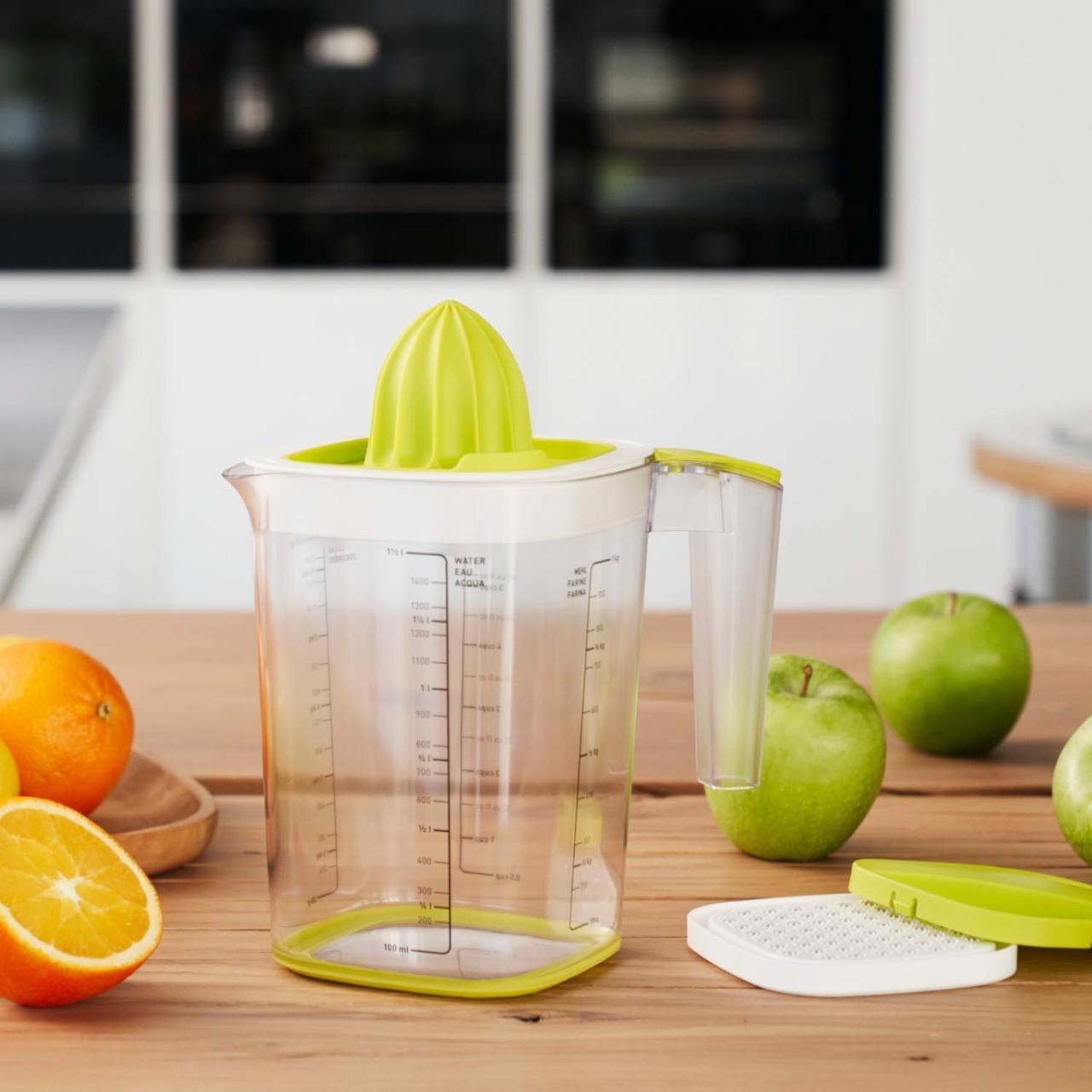 Вы любите готовить или печь, это работает лучше всего и особенно гладко, если у вас есть соответствующее оборудование. Многофункциональная мерная чашка 1,5 л LOFT от Rotho – это один из таких помощников. С одной стороны, вы можете использовать в качестве мерного стакана и точно и легко отмерять такие ингредиенты, как вода, мука или сахар. С другой стороны, вы можете использовать прозрачную мерную чашку, очень универсальную благодаря своим аксессуарам. Мерный стакан 1,5 л LOFT имеет брызгозащитную крышку с системой фильтрации, встроенную шину, а также противоскользящее кольцо для безопасного стояния. Если вы хотите выжать лимон, это тоже возможно без проблем с помощью предоставленного эссе. Благодаря форме и свойствам пластикового мерного стакана обеспечивается безопасная подставка во всех рабочих процессах. Объем 1,5 л также дает множество возможностей. Так как чашка прозрачная, можно быстро увидеть, что в ней находится в данный момент. Для очистки все детали можно мыть в посудомоечной машине. Пластик не только безвреден, но и прочен.