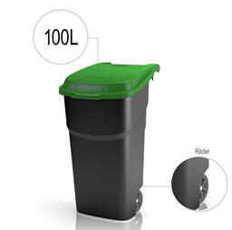 Контейнер для мусора на колесах 100 л ATLAS, черный/зеленый