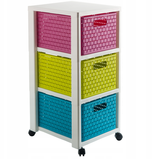 Комод пластиковый 3 отд. 50 l COUNTRY, белый/розовый, лайм, бирюзовый