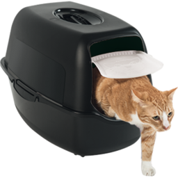 Встроенный фильтр с активированным углем помогает свести неприятные запахи к минимуму. Кошка может легко заходить в лоток и выходить из него благодаря распашной дверце.