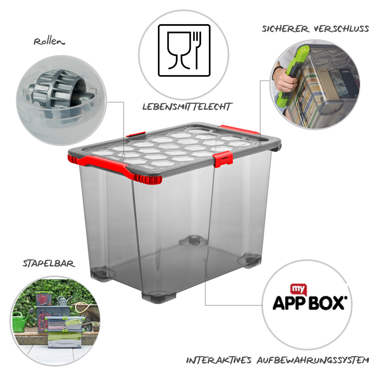 Контейнер для хранения с колесами 65 л EVO TOTAL, антрацит/красный