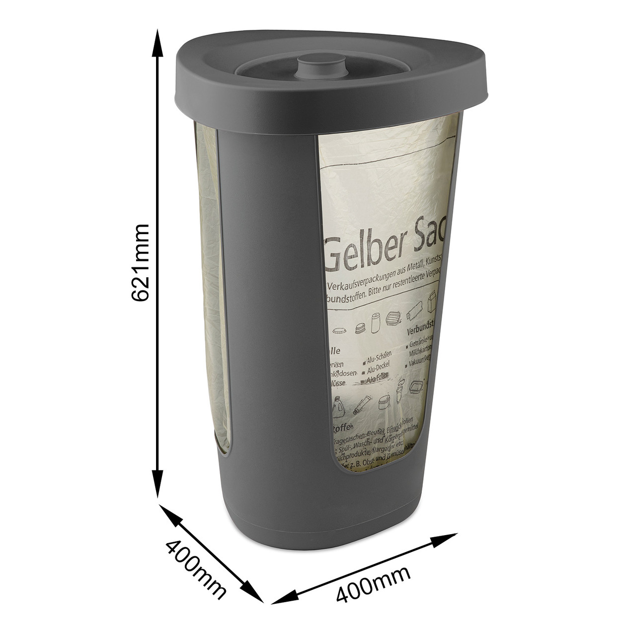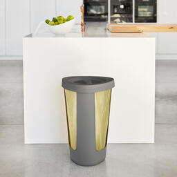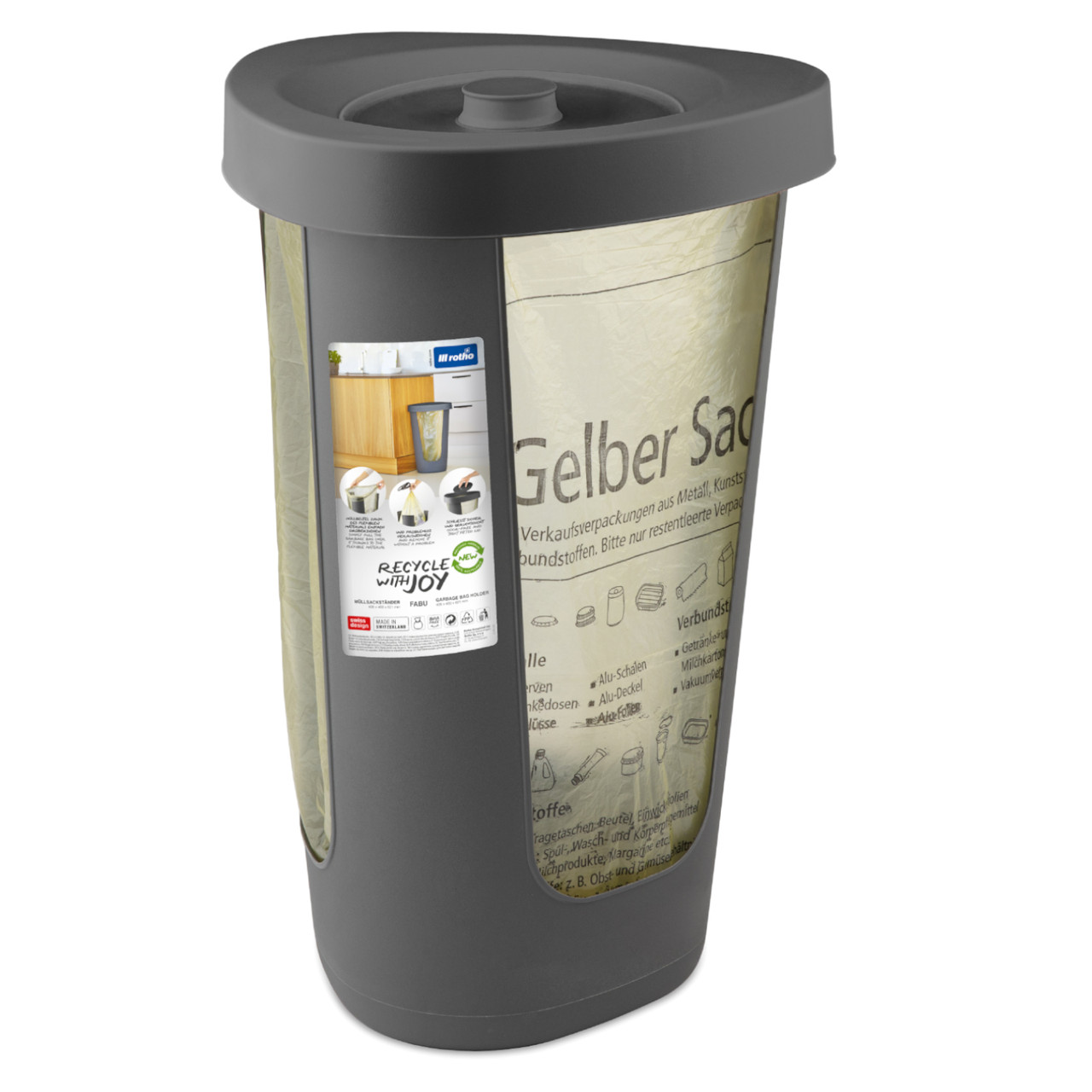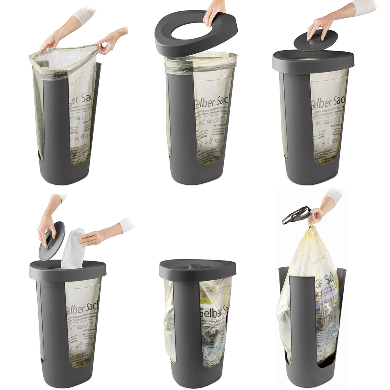 Новинка контейнер для мусора FABU отличается инновационным и в то же время современным дизайном. Благодаря продуманной форме он предлагает идеальное использование пространства. Подставка для мешков для мусора предлагает идеальное место для желтого мешка или других мешков для мусора, которые удобно крепятся к трем закругленным гибким углам и так же легко вынимаются. Кроме того, крышка надежно закрывается и не пропускает запахи.