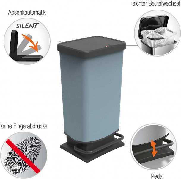 Мусорный контейнер с педалью 40 л PASO, голубой