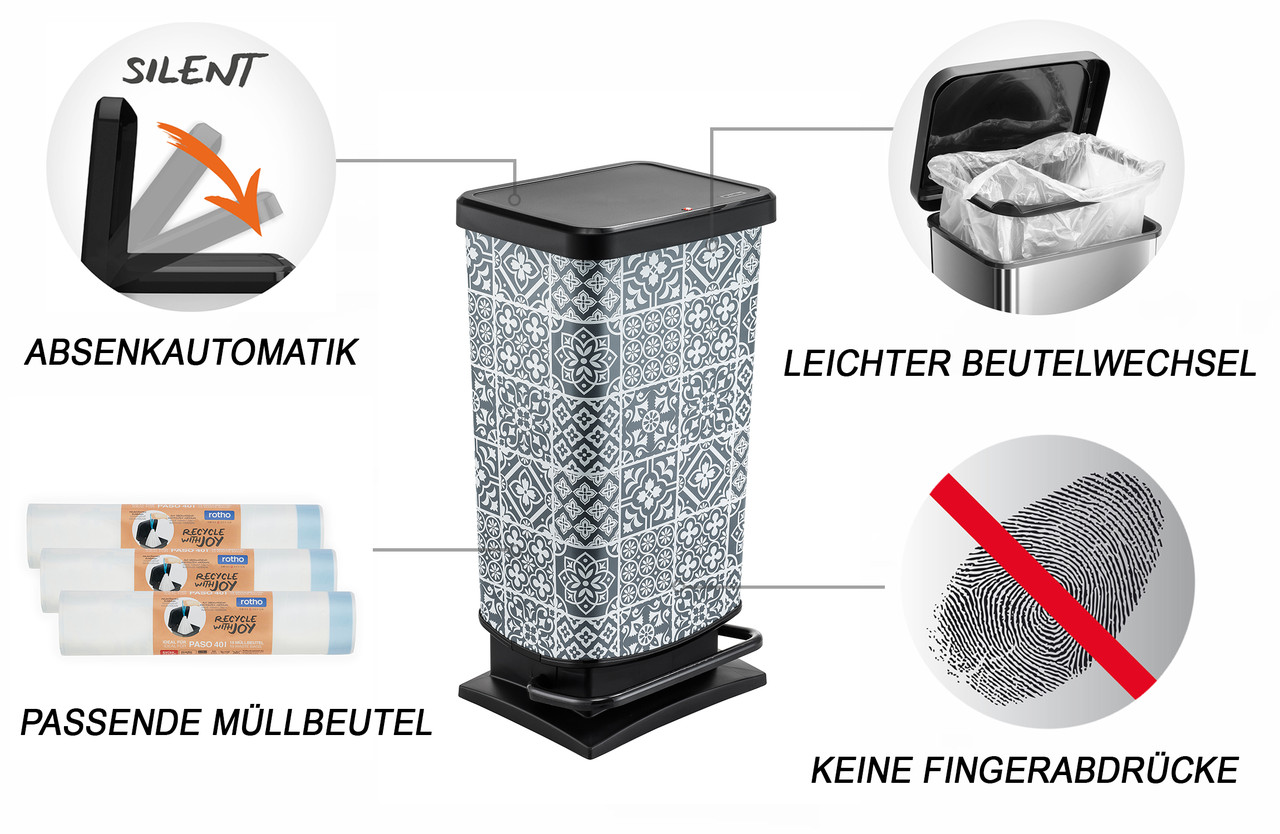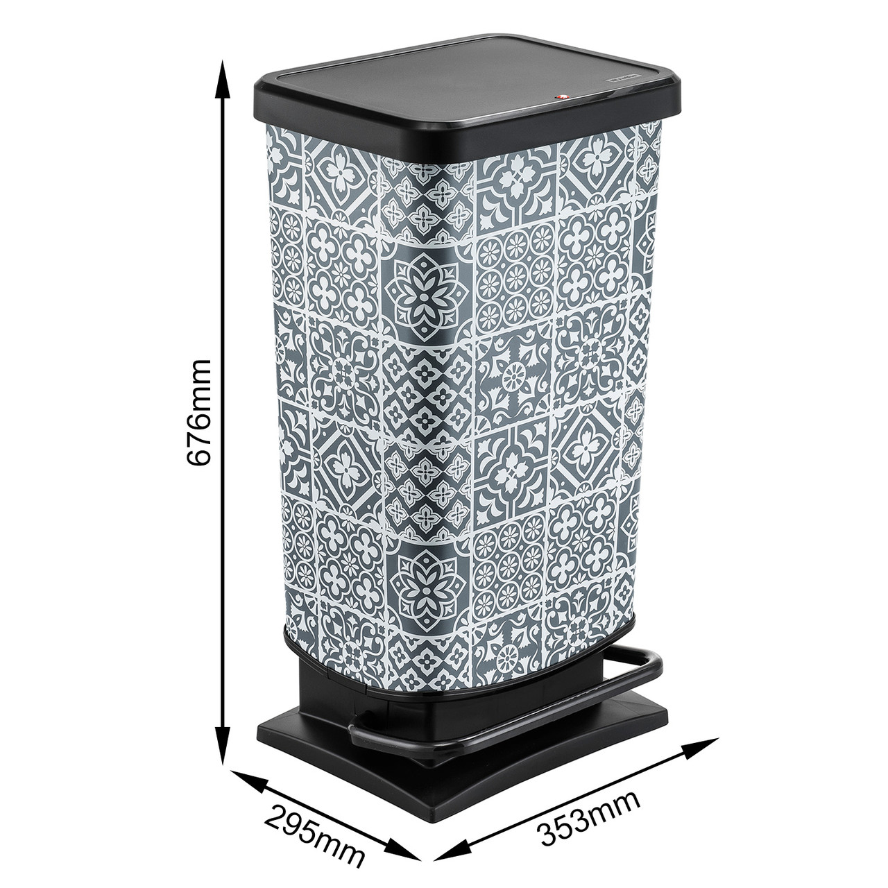 Мусорный контейнер с педалью 40 л PASO, черный/серый