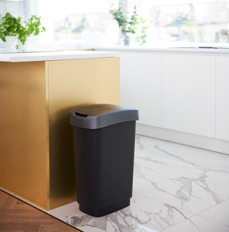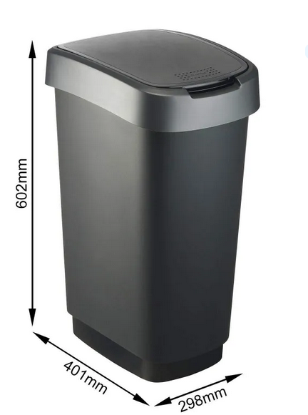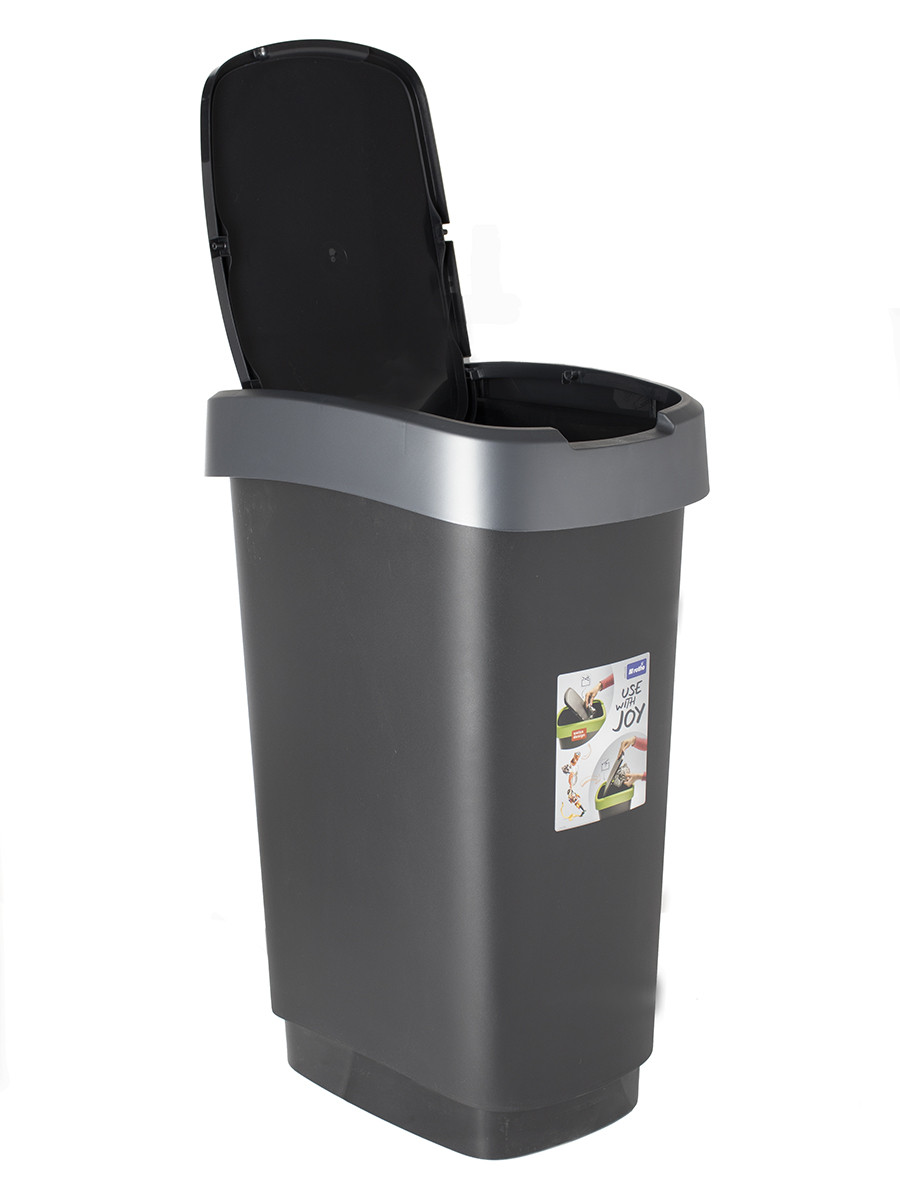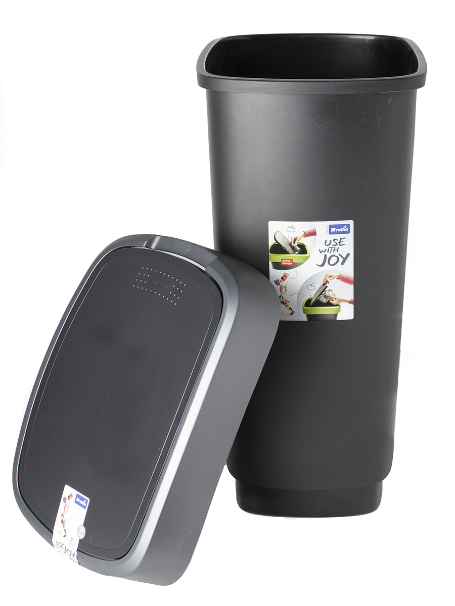 Мусорный контейнер с крышкой 50 л TWIST, черный/серый