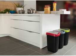 Идеально подходит как для кухни, ванной комнаты, так и для офиса. Корзина очень легкая и имеет интересную форму. Изготовлена из высококачественного пластика. Откидная крышка.