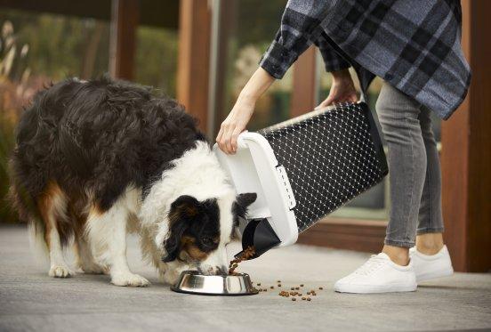 Объем упаковки составляет 50 литров и, таким образом, имеет внушительную вместимость. Крышка контейнера защищает содержимое от света и плотно закрывается. Таким образом, сухой корм остается свежим и ароматным. В крышку встроен насыпной механизм, с помощью которого можно без проблем подавать корм в миску. Для заполнения контейнера сухим кормом для собак и кошек, крышку можно легко снять и установить на место. Дизайн контейнера для сухого корма Cody сразу бросается в глаза и,если, например, оставить его видимым, это не будет проблемой, а скорее элементом декора. Форма у контейнера довольно узкая, но зато высокая. Это идеальный вариант, если у вас недостаточно места для хранения. Пластик, из которого состоит контейнер, не содержит загрязняющих веществ и BPA и очень прочный. Его можно мыть в посудомоечной машине или чистить вручную.