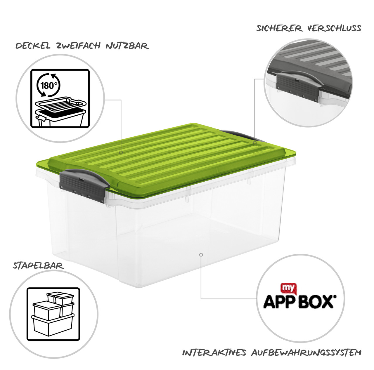 Стопируемый Контейнер для хранения A4, 13 л COMPACT, прозрачный/зеленый