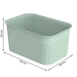 С помощью небольшого ящика BRISEN объемом 4,5 л и других из этой серии от Rotho теперь вы можете поддерживать порядок не только на кухне. Коробка без крышки сделана из пластика, очень прочного. Еще одним преимуществом является то, что этот простой в уходе материал можно чистить влажной тканью. Разумеется, пластик, из которого изготовлены изделия Rotho, не содержит вредных веществ и BPA.