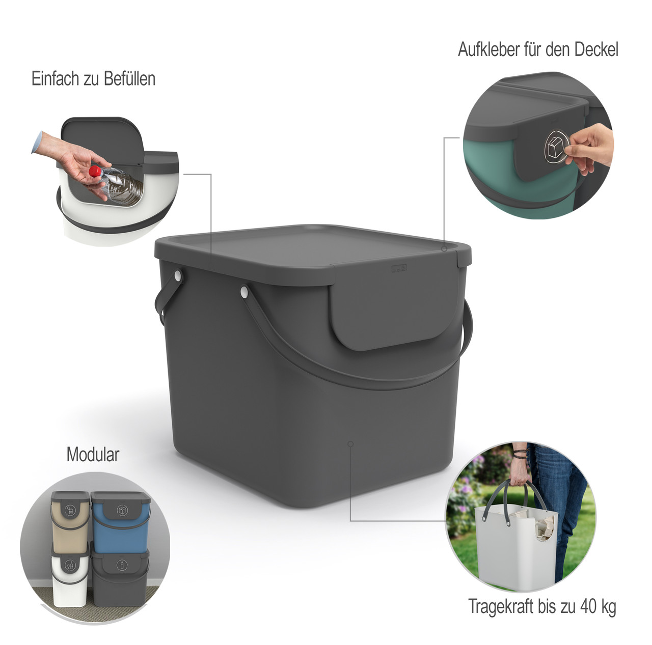 Контейнер для мусора ALBULA 40 литров - умное разделение мусора для кухни, ванной и других помещений.
