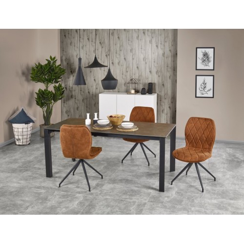 Стол обеденный HORIZON HALMAR Стол HORIZON HALMAR – стильный обеденный стол польской компании Halmar (Халмар) с керамической прямоугольной столешницей в цвете humo. Прямые устойчевые ножки из окрашенной в черном цвете стали. Стол Хоризон Халмар идеально подходит для современных гостиных и просторных кухонь.