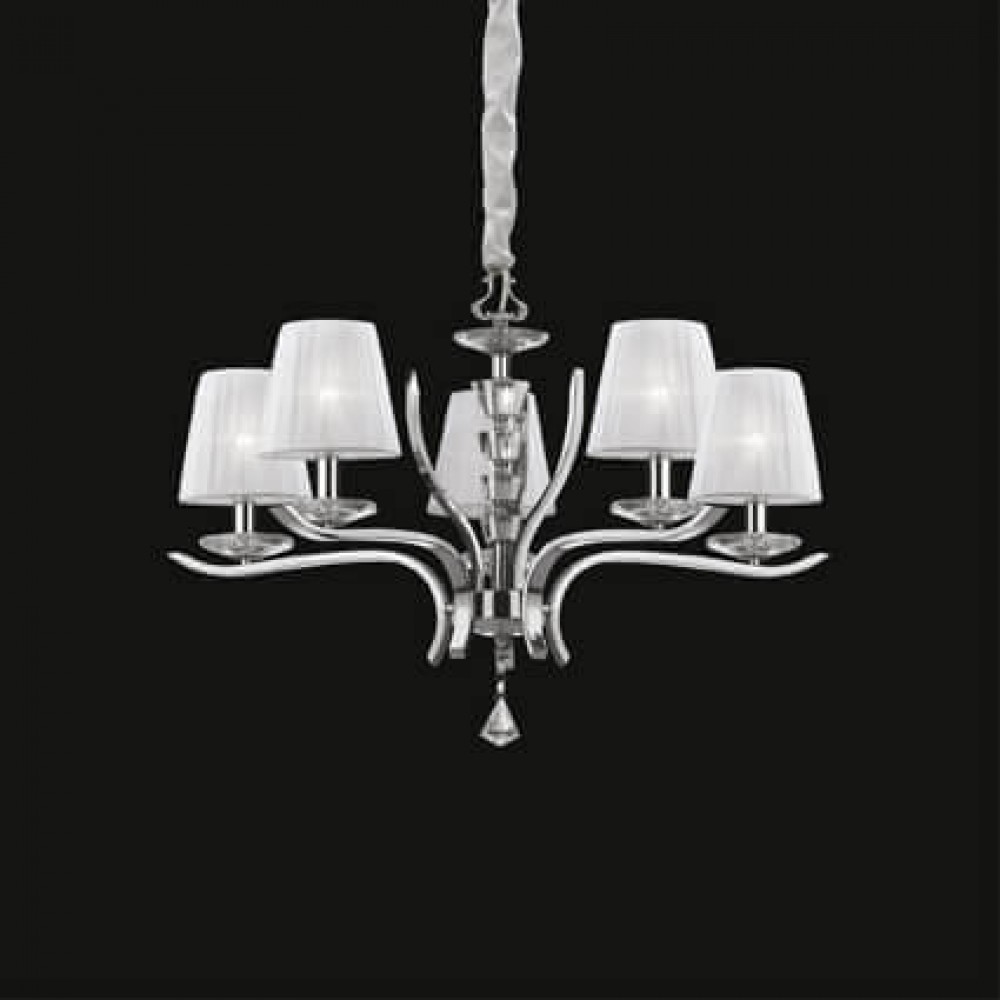 Нежная модель Pegaso SP5 Bianco от компании Ideal Lux относится к коллекции Pegaso и отлично подойдет Для спальни. Cтиль в котором оформленная данная модель - Арт-деко. Подвесная люстра Ideal Lux Pegaso SP5 Bianco 066448 осветит помещение площадью 11.1 кв. м. Производитель Ideal Lux рекомендует использовать для устройства следующие лампы: Накаливания, цоколь E14, мощность 40 W. Основным цветом товара является Белый
