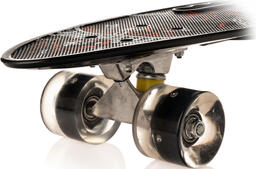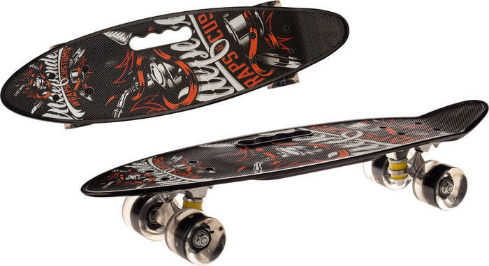 Пенниборд, детский, дека: пластик, длина 24 ", ширина 7 ", до 60 кг, подшипник ABEC 7, черный, оранжевый, цветной принт.