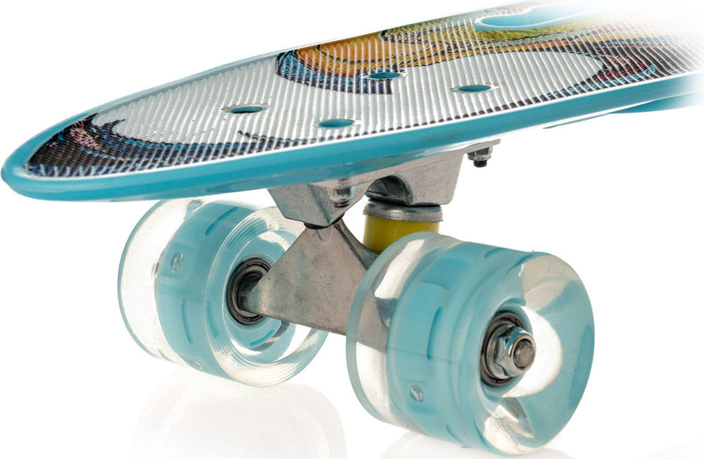 Пенниборд, детский, дека: пластик, длина 24 , ширина 7 , до 60 кг, подшипник ABEC 7, голубой, цветной принт.