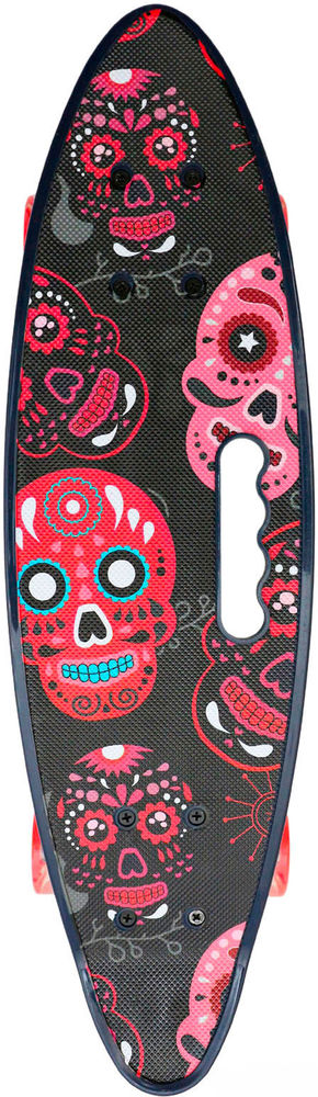 Скейтборд, детский, дека: пластик, длина 23 , ширина 7 , до 50 кг, подшипник ABEC 5, черный, розовый, цветной принт.