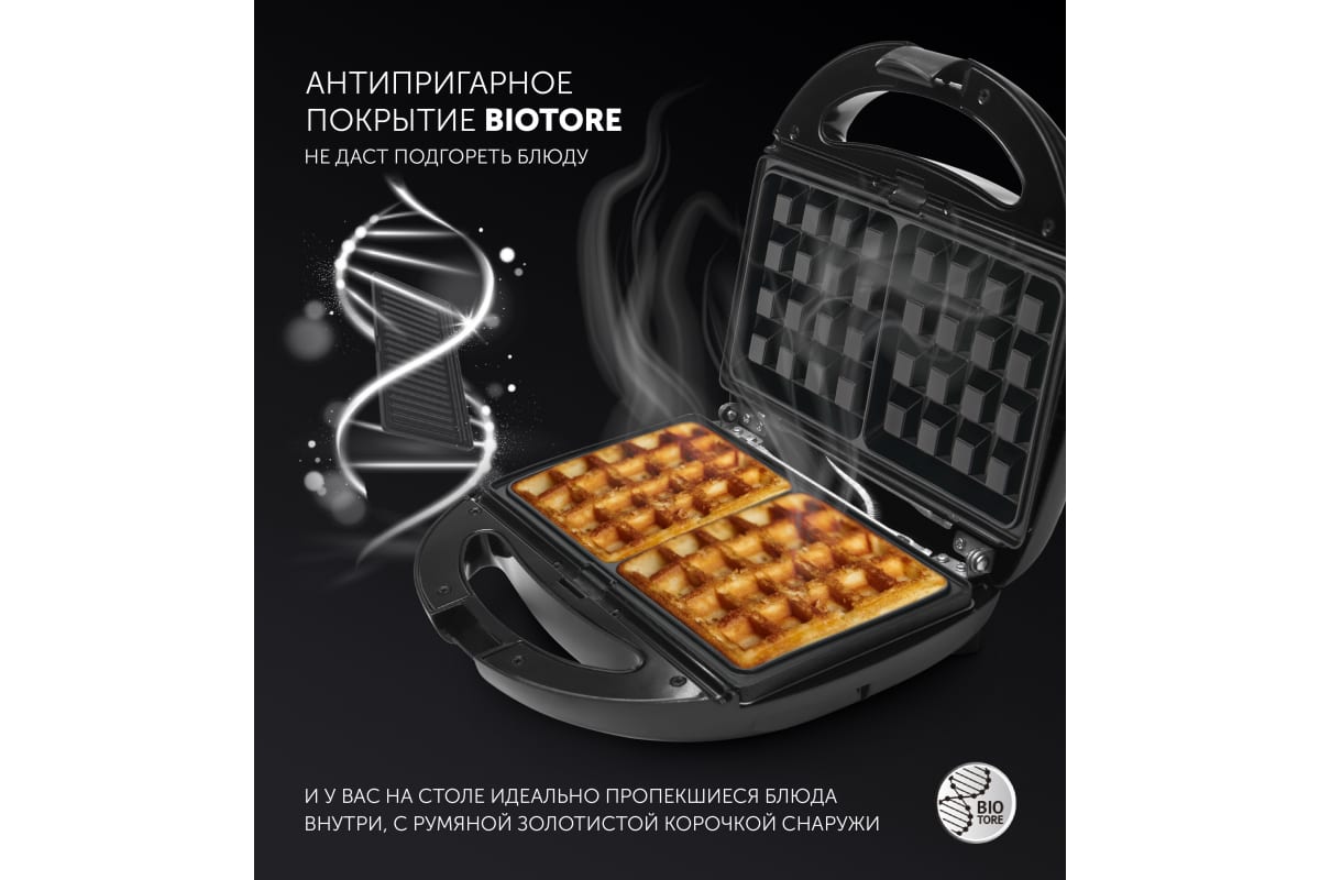Прибор для выпечки Polaris PST 0203 017856 поможет приготовить сэндвичи или венские вафли, может использоваться в качестве гриля. Антипригарное покрытие BIOTORE не даст пригореть блюду. Оснащен ненагревающейся ручкой и противоскользящими ножками для безопасности и комфорта. Поддерживает автоматический контроль температуры.