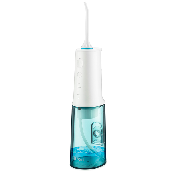 ОсобенностиПортативный ирригатор Kitfort КТ-2908 - это простой и эффективный прибор для чистки полости рта. Тонкая и сильная струя воды не только вымывает остатки еды, налёт из межзубного пространства и пародонтальных карманов, но и массажирует дёсны.