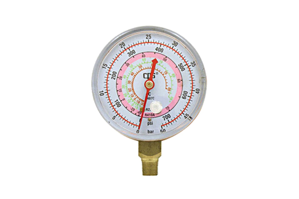 Манометр высокого давления R-410 RGOH RM0808 CPS используется совместно с системами кондиционирования воздуха при процессе вакуумации. Манометр позволяет следить за давлением хладагента для качественной и успешной вакуумации. Приспособление применяется при работе с фреоном R410. Легкое обращение с манометром благодаря четкой шкале.