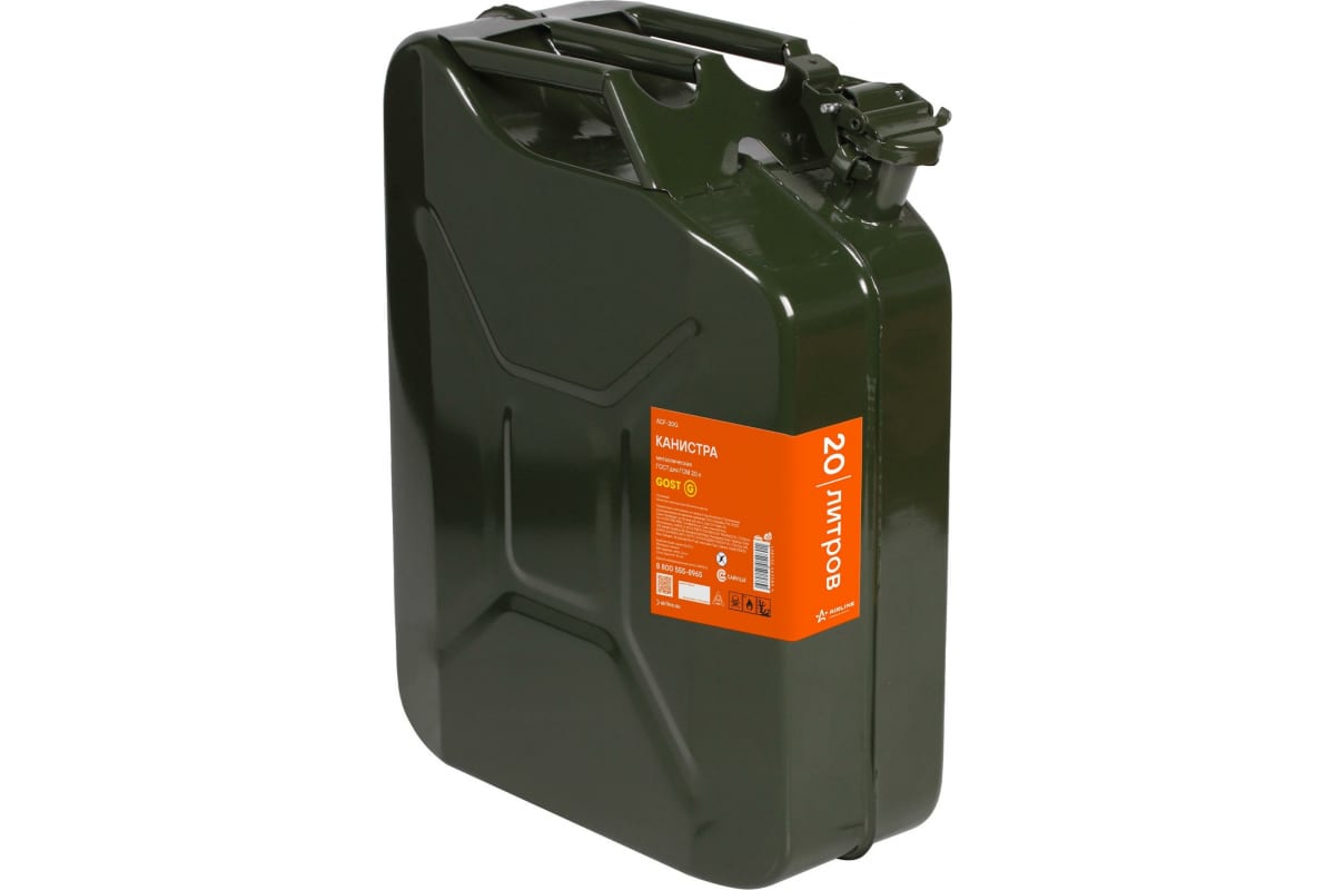 Канистра металлическая ГОСТ 20 л AIRLINE ACF-20G для горючих жидкостей применяются, как дополнительная емкость для хранения топлива либо других технических/горючих жидкостей. Чаще всего они располагаются либо в багажном отделении, либо на борту автомобиля.