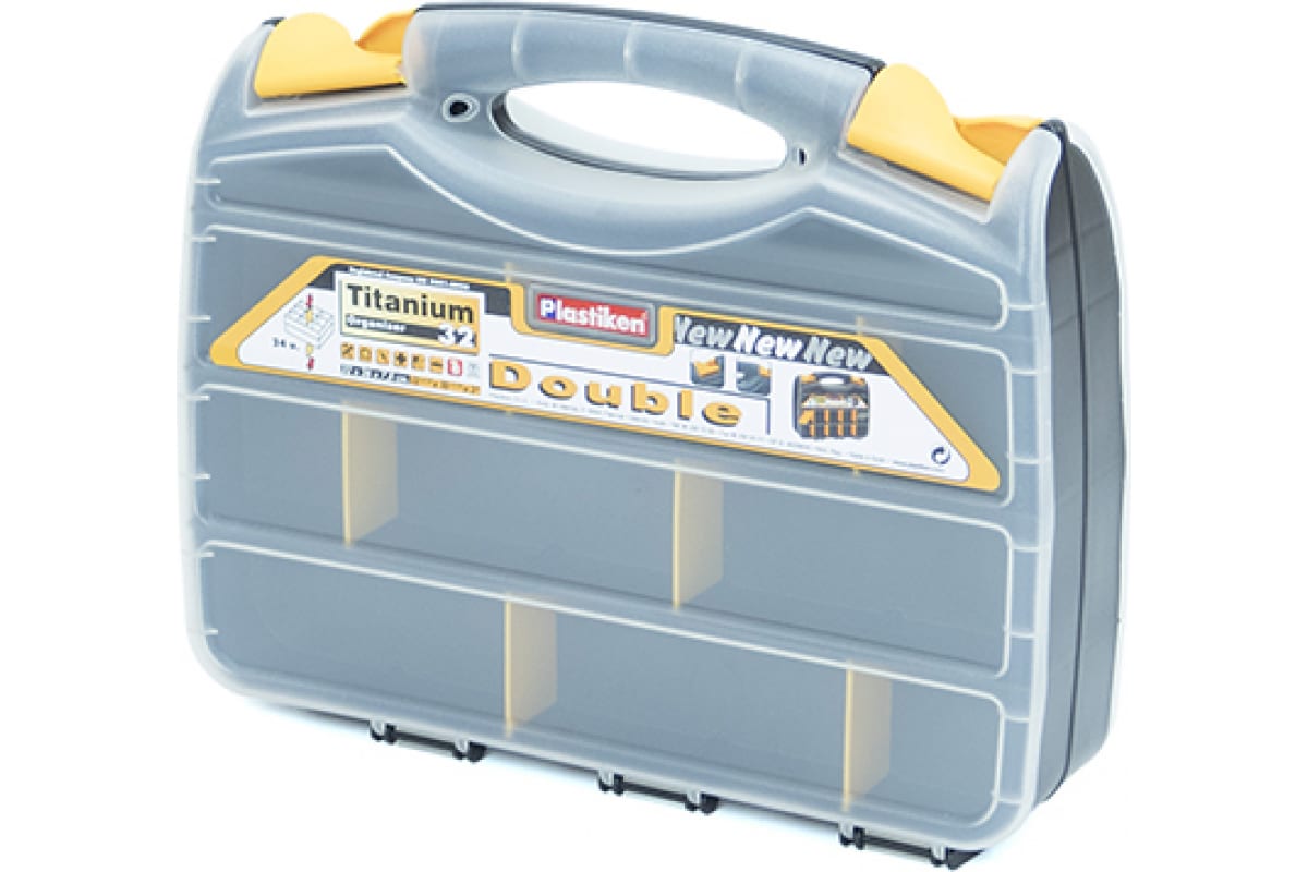 Двойной органайзер PLASTIKEN 32 см 80322 подходит для бытового и профессионального использования. Может применяться для хранения и транспортировки крепежа, метизов, рыболовных снастей, мелкого инструмента, а также для других целей. Органайзер выполнен из качественного и прочного пластика. Материал не содержит в составе вредных для здоровья человека веществ, а потому безопасен для здоровья. Органайзер оснащен прочными защелками, что препятствует утере содержимого. Двусторонняя конструкция изделия позволяет хранить большее количество предметов.
