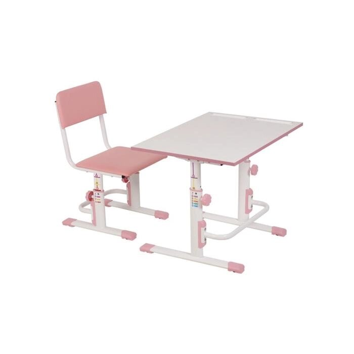 Комплект Polini kids растущая парта-трансформер + регулируемый стул, цвет белый-розовый