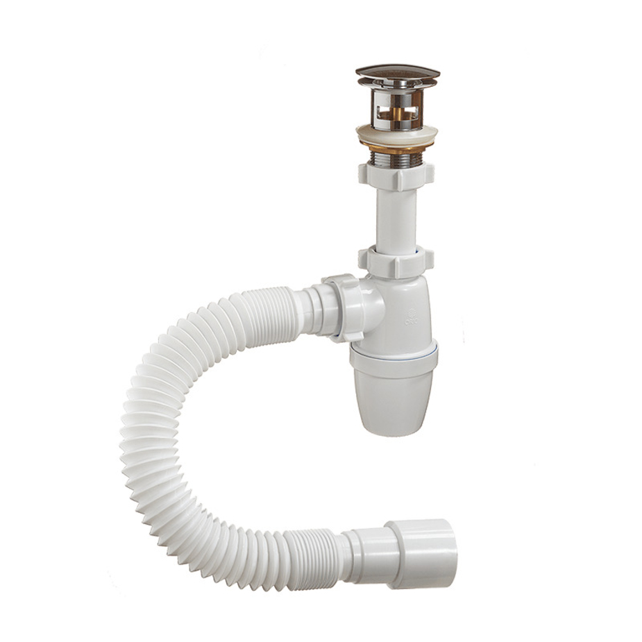 ОРИО сифон бутылочный 1 1/4 х 40 с металлическим выпуском "клик-клак", с гибкой трубой 40-40/50