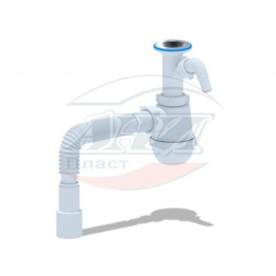 Сифон 11/2"х40 нерж выпуск с отводом и гофрой 40/50 АНИ Грот А2015