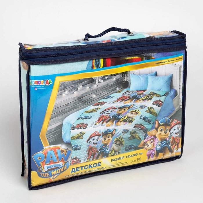 Покрывало стеганое Щенячий патруль «Маршал, Гонщик и Крепыш» 145х200см, поплин 105г