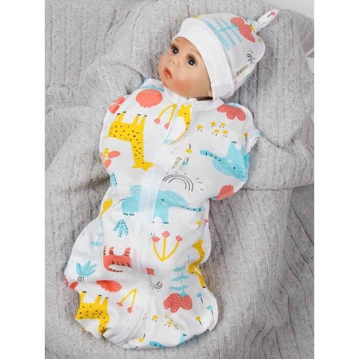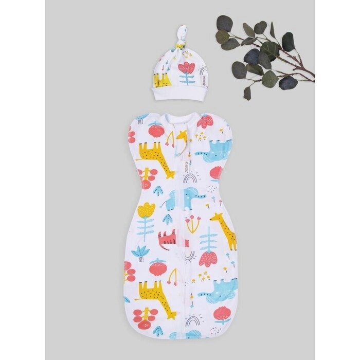 Фигурная пеленка-кокон на молнии с шапочкой Amarobaby Curly Зоопарк, размер 56/68