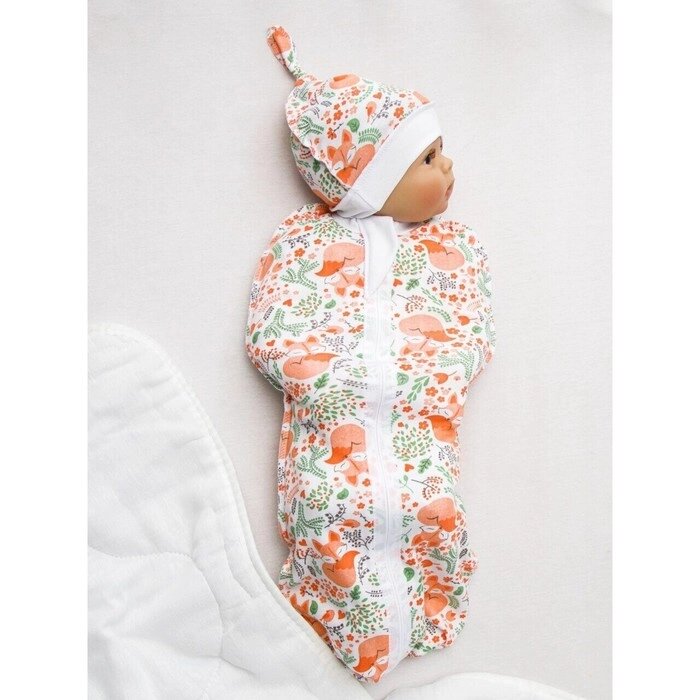 Пеленка (кокон на молнии) с чепчиком (шапочкой) детская Amarobaby Soft Hugs Лисички, белый, размер 6