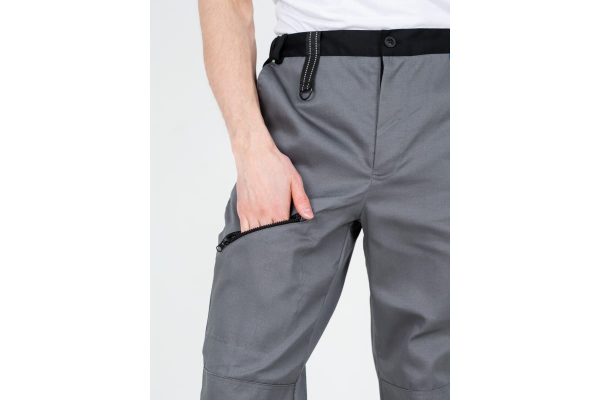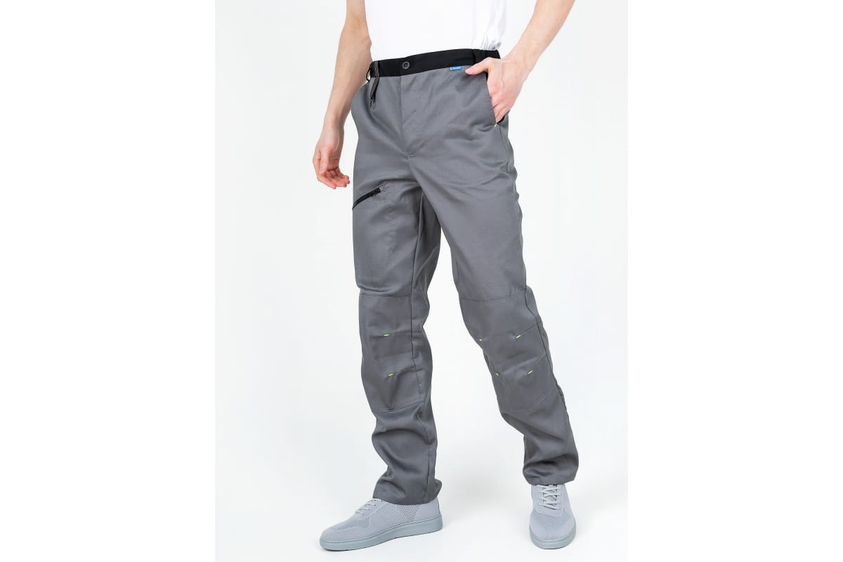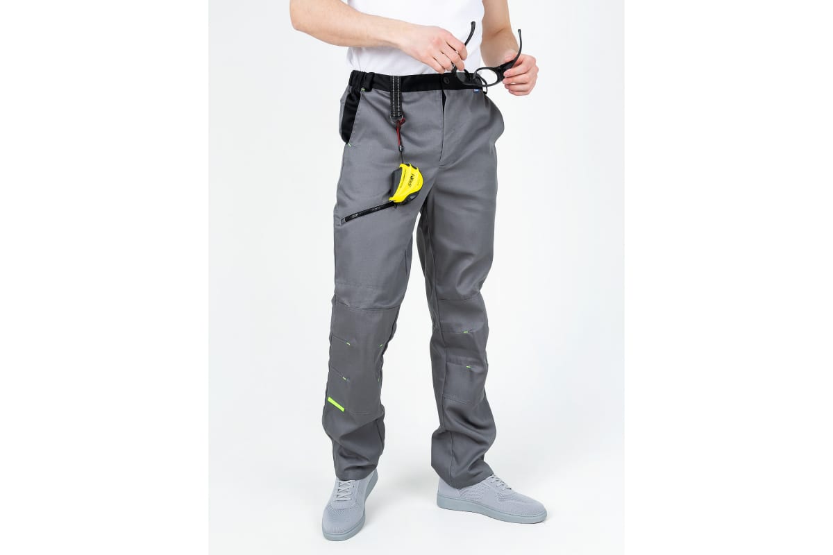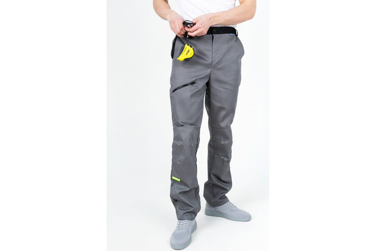 Мужские брюки ООО ГУП Бисер Премиум размер 56-58, рост 170-176 4640100800337 оснащены притачным поясом, стянутым по бокам эластичной тесьмой, что позволяет регулировать их по объему. Застегиваются на молнию, имеют многофункциональные карманы: два боковых внутренних, один прорезной на молнии на правой половинке и один на задней половинке. В области колен предусмотрены особо прочные накладки с вытачками для объема.