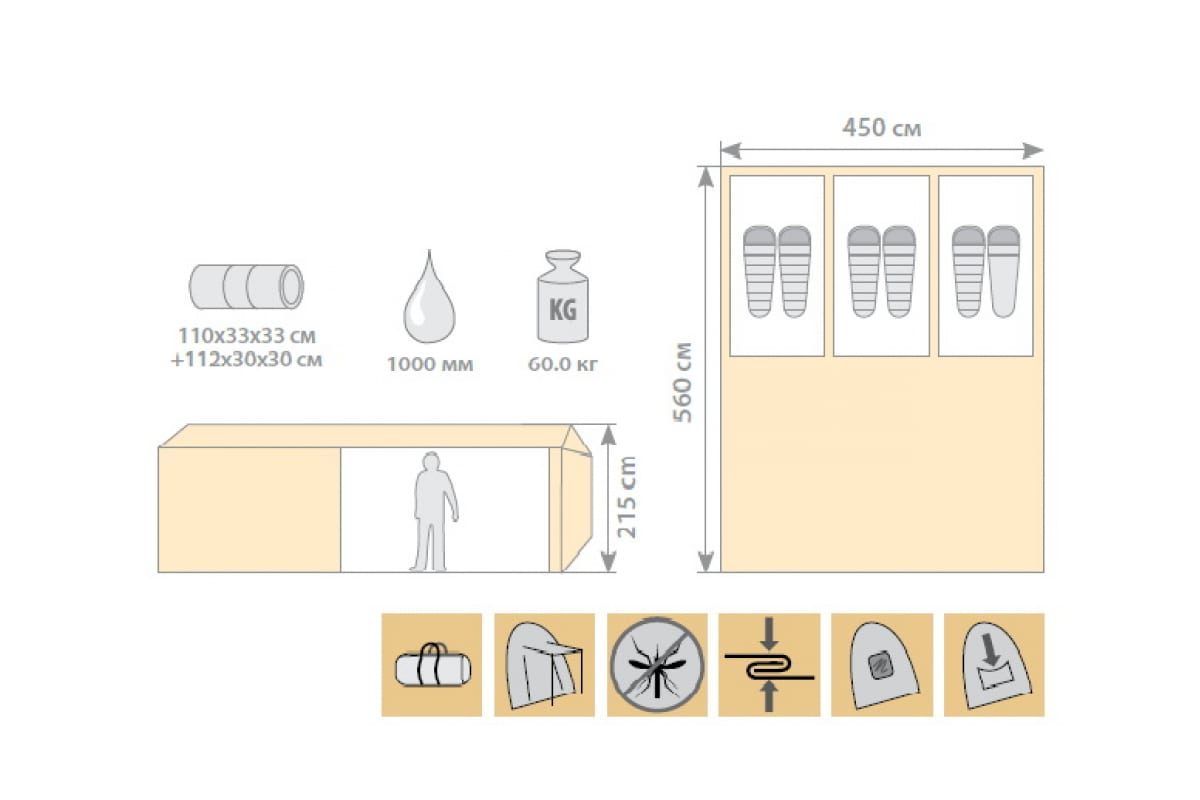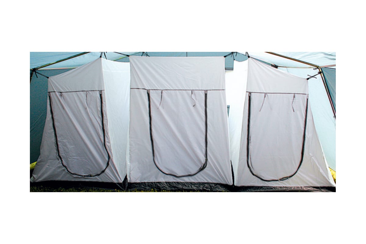 Кемпинговая шестиместная палатка, 2 части Holiday GRANGE 6 H-1050 многофункциональная и незаменимая для поездки семьями. Имеет три входа с отдельными спальнями по два места в каждой. Просторный тамбур с козырьком, в котором можно оставить вещи или установить стол. Изготовлена из прочного нейлона, внешние швы тента проклеены, что обеспечивает длительный срок службы и дополнительную защиту от влаги. Большие окна с противомоскитной сеткой обеспечат спокойный сон и отличную вентиляцию.