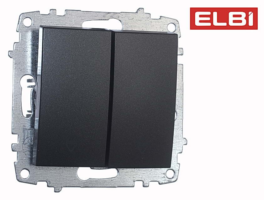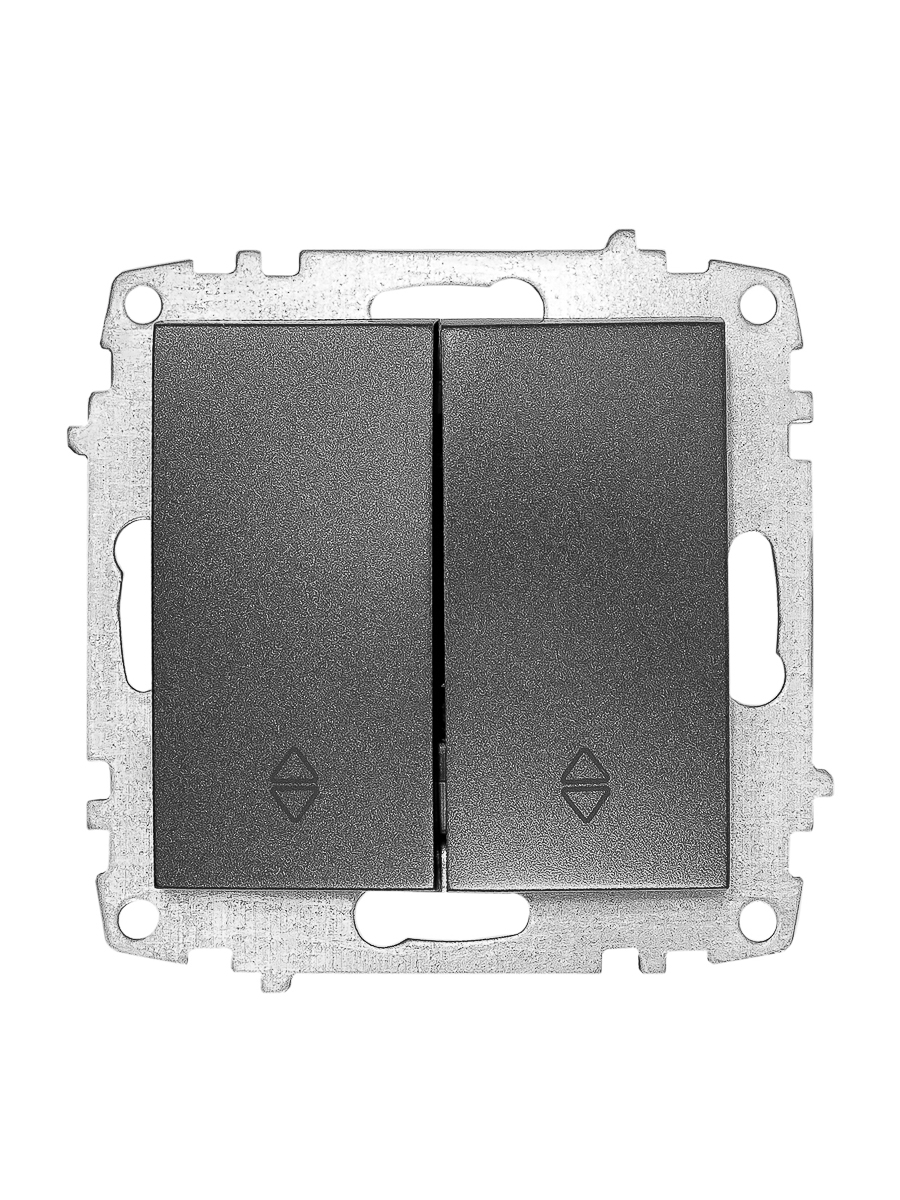Узел выключателя, 2-клавишный, проходной, для скрытой установки. Без рамки. Цвет - дымчатый.